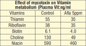 to 5, 7 and 63%, respectively. It also reduces all amino acids, vitamins, viz., A, D, E, K, B , B , B , niacin, pantothenic acid in the diet. T-2 toxin consistently 1 2 6
