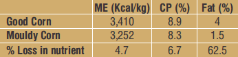 Energy, crude protein and crude fat contents of mouldy maize may go down up